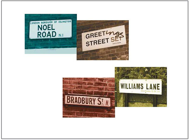 Bradbury & Williams 'London street names' Christmas card (outside)